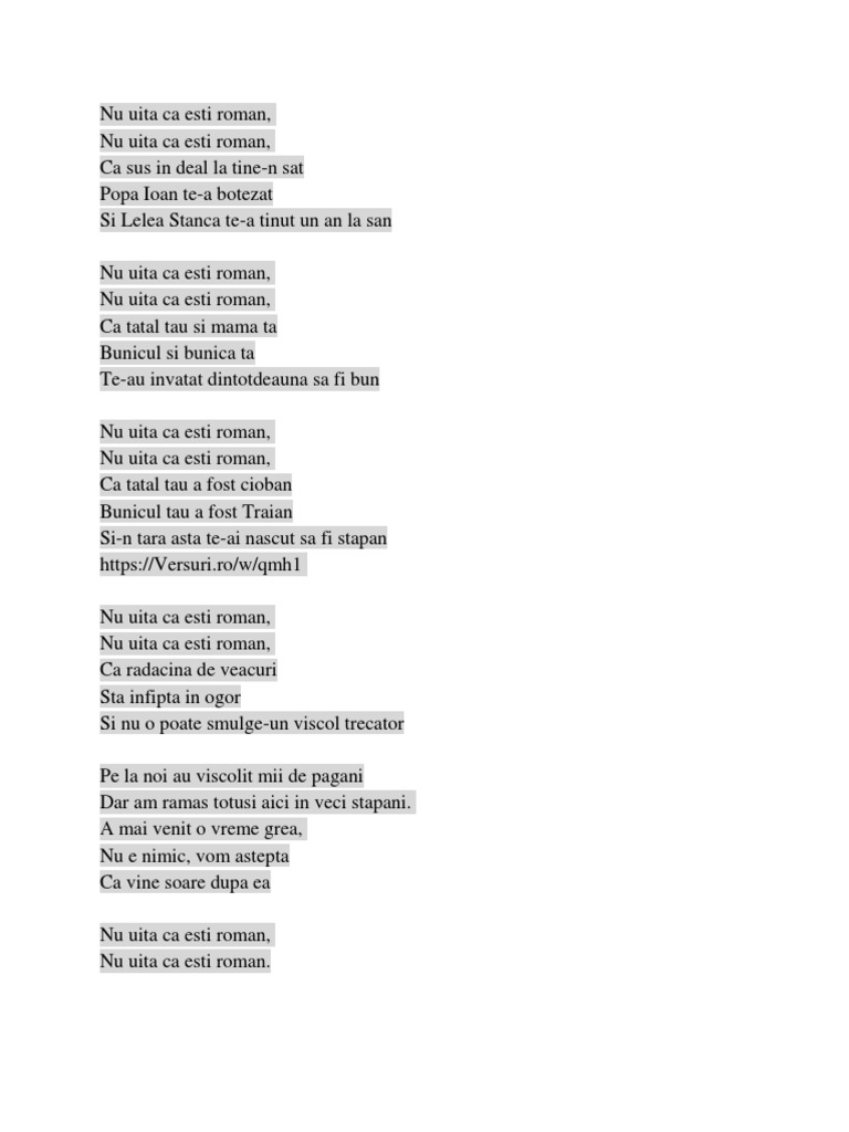 Nu Uita Ca Esti Roman Versuri