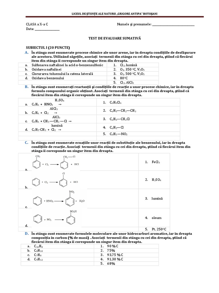 Un Test Pentru Capitolul Arene La Chimie Clasa Axa