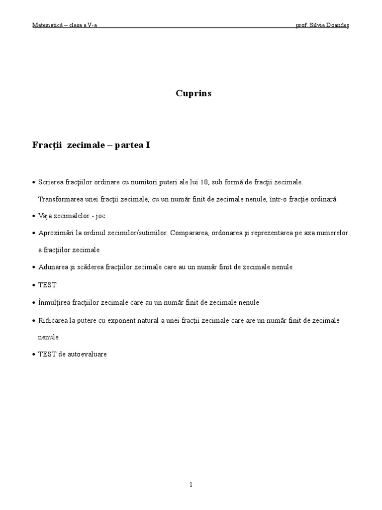 Fișă De Lucru Clasa A V A Fractii Zecimale