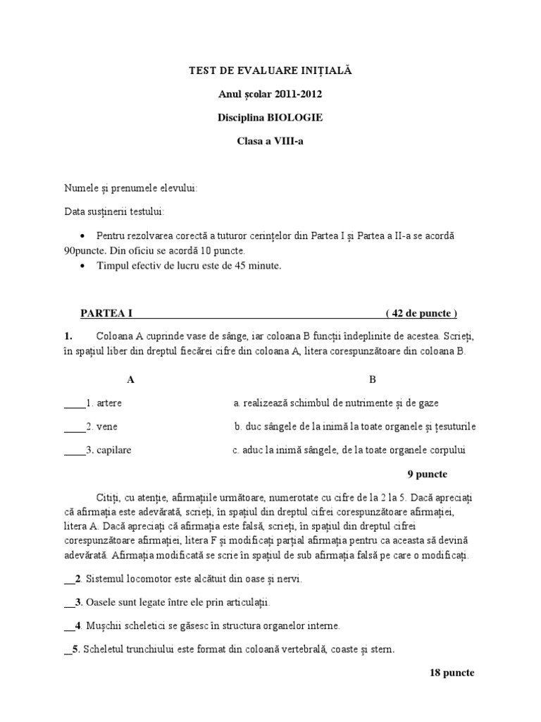 Test Inițial Clasa 8