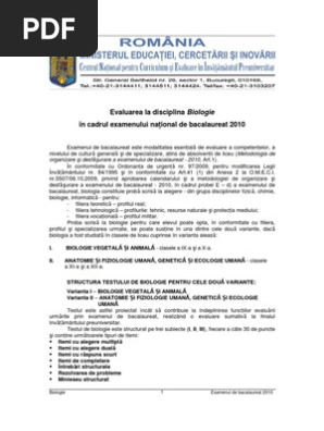 Biologie Bacalaureat 2010 Modele De Subiecte Lm 5197